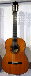 Konzertgitarre "Seizi Inaba" 1978, Modell 200, Handarbeit mit 65,5cm Mensur, Decke aus massiver Fichte, Zargen und Boden aus massivem ostindischem Palisander, mit einem Ebenholzgriffbrett, Mahagonihals, Saitenweite am Obersattel 43mm am Steg 57mm, gute vergoldete Mechanik, aufwändige Einlagen, Schellacklackiert, sehr gut spielbar, sehr sensibel reagierend, ausgezeichneter Zustand, 2650€