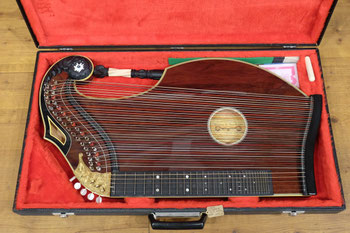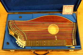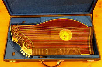 Harfenzither 40-saitig, Walter Sandner Mod. 505182, Meisterinstrument in Doppelpalisander-ausführung, vergoldete Mechanik, Griffbrettmensur 43,5cm, top spielbar eingestellt, neu besaitet mit Lenzner Fisoma Nylon im originalen Etui, wie neu Gelegenheit 1250€