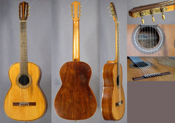 Konzertgitarre "Guitarras Rosner 1C", 65cm, vollmassiv, Zeder/Mahagoni, Palisandergriffbrett und Steg, Cedrohals mit Palisandereinlage, mattlackiert, gute Rubner-Mechanik, SP 735€